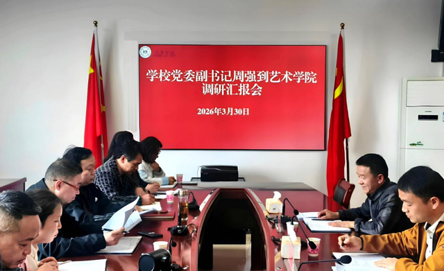 3月30日下午,学校党委副书记周强到艺术学院调研。(供稿/敖小爽 编辑校对/黎美余 审核/张俊霞 图片/路明)