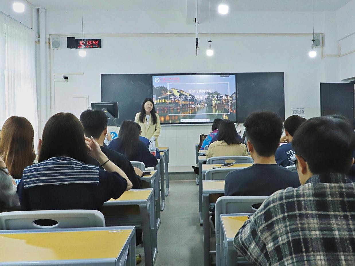 10月16日上午,文学与新闻学院在博学楼103召开新闻学专业2023级见习成果汇报大会。学院教学科研科科长朱艳,新闻学副系主任吴向华,新闻学教师王锡靓、陈群、杨宏霞出席会议。新闻学系主任余索主持。