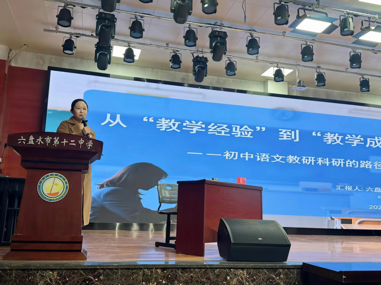 11月10日,2025年初中语文“跨学科学习任务群”研修活动暨教学实践研讨会在六盘水市第十二中学成功举办。我院中文系系主任卫佳受邀参加,并担任讲座专家。郑宇名师工作室核心成员及来自区域内各初中的语文教师代表参加讲座,由郑宇主持。